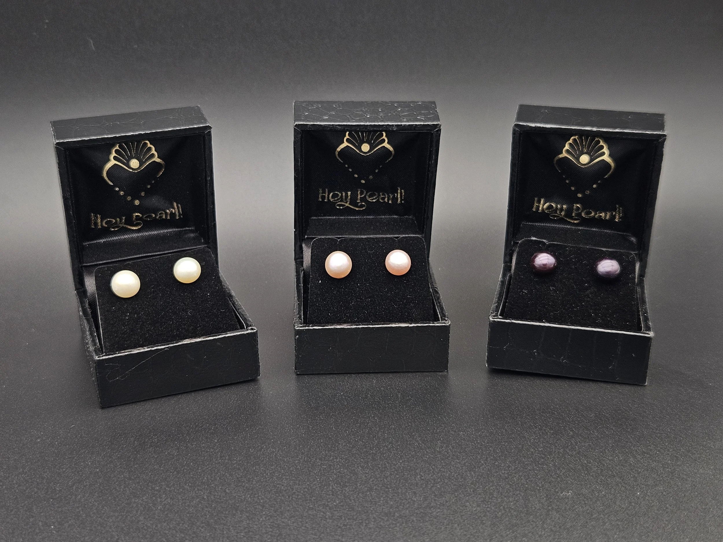 Shop › Earrings - 8-8.5mm Freshwater Pearl studs Image 1 of 8 Image 2 of 8 Image 3 of 8 Image 4 of 8 Image 5 of 8 Image 6 of 8 Image 7 of 8 Image 8 of 8 Earrings - 8-8.5mm Freshwater Pearl studs $25.00 8-8.5mm Freshwater Pearl stud earrings with .925 Sterling Silver post Color: White Black Lavender Get notified by email when this product is in stock. Quantity: Purchase Added! 8-8.5mm Freshwater Pearl stud earrings with .925 Sterling Silver post