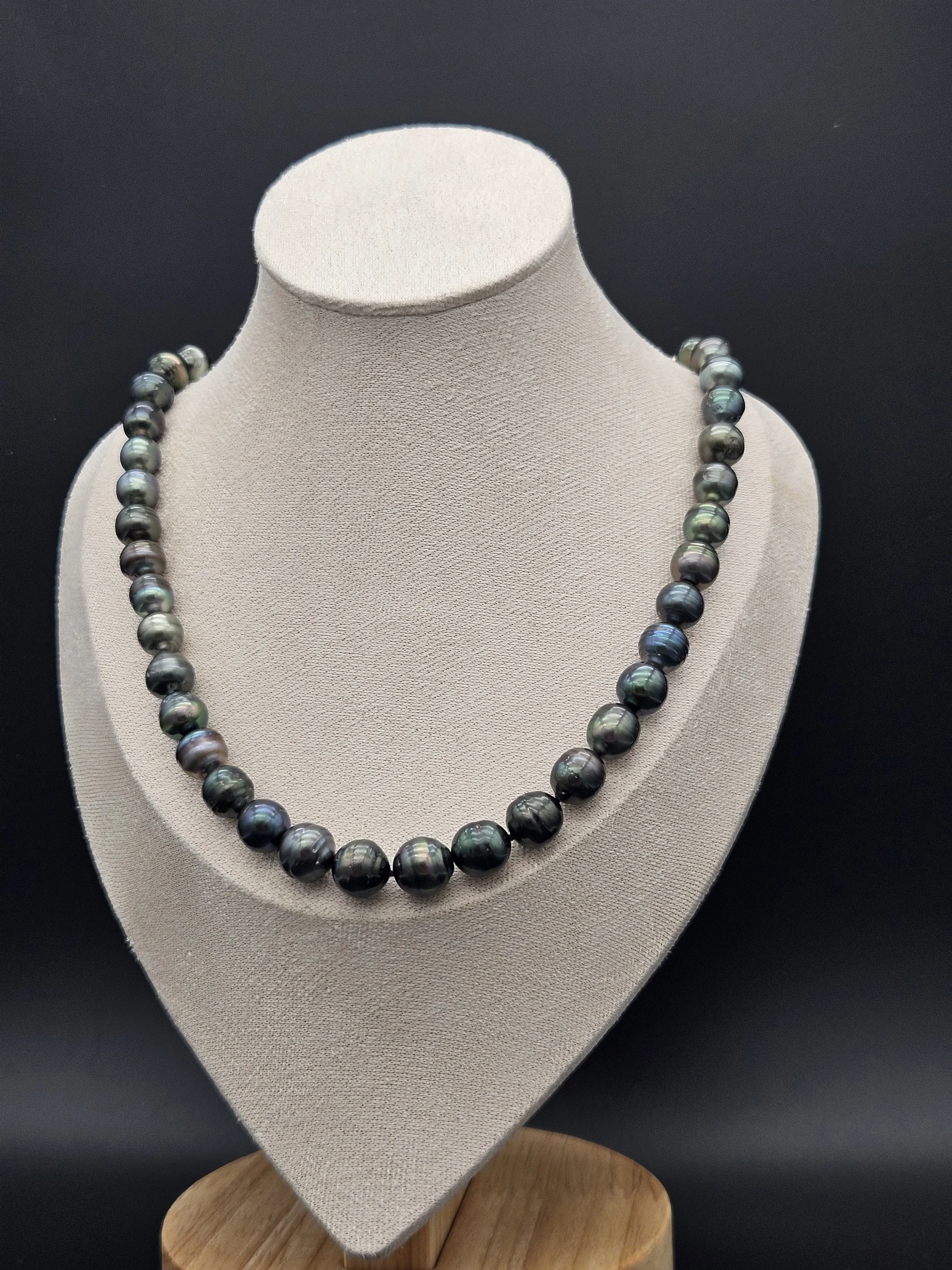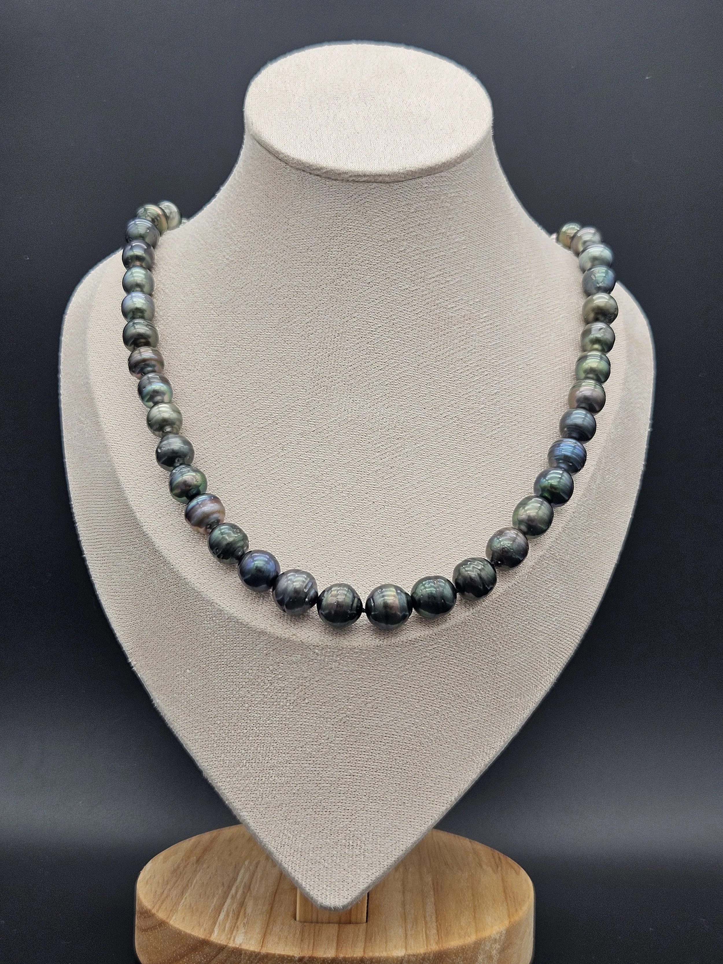 Shop › Peacock Tahitian Pearl Strand Image 1 of 2 Image 2 of 2 Peacock Tahitian Pearl Strand $850.00 8-9mm Peacock Tahitian Pearl necklace Approx 20” with Sterling Silver clasp Get notified by email when this product is in stock. Quantity: Purchase Added! 8-9mm Peacock Tahitian Pearl necklace Approx 20” with Sterling Silver clasp